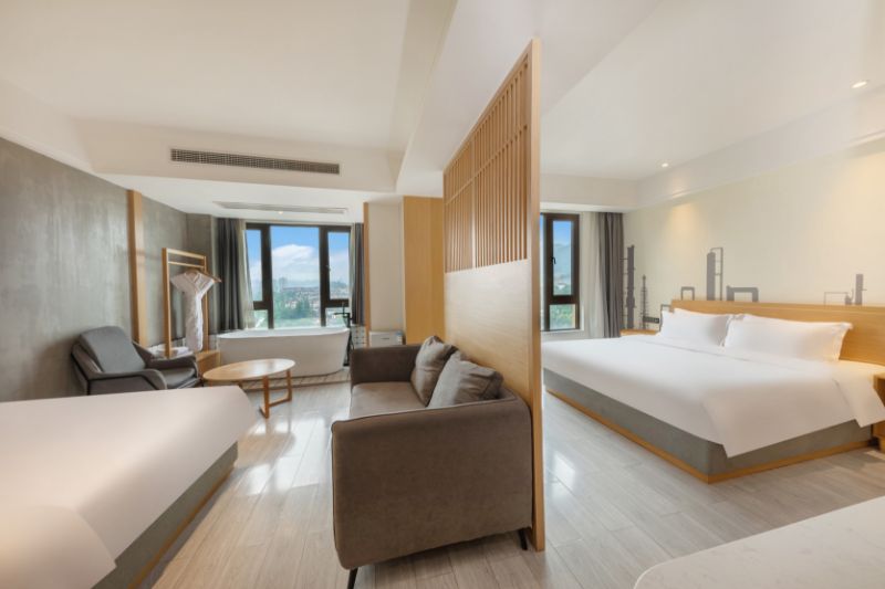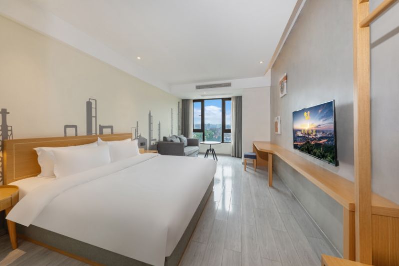 重庆柒寓酒店(磁器口店)属于都市精品酒店,坐落于歌乐山脚下,紧邻地铁1号线石井坡站,交通便利、四通八达;距沙坪坝商业中心仅需10分钟车程。酒店周边旅游资源丰富,国家4A级古镇磁器口、重庆1949大剧院、渣滓洞、白公馆、重庆抗战博物馆等均距酒店3公里内,是都市旅游及商务旅行的理想之选。酒店房型资源丰富,单、标、亲子、家庭套等各类房型共计165间,每间客房均设全景落地玻璃窗,可观江、可揽山,一方丽水,一隅山居,一品生活,不期而遇,乐享之旅!