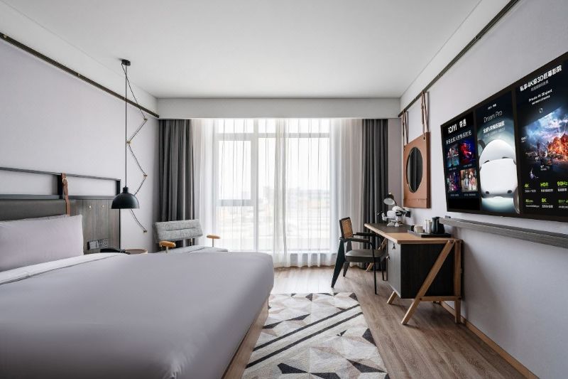 酒店地处大虹桥核心潜力发展区域——南虹桥,周边紧邻虹桥商务CBD中心、国家会展中心、新虹桥国际医学中心以及上海虹桥国际机场、上海虹桥火车站等交通核心枢纽。酒店有客房和服务公寓,一层开放式大堂“蜂箱”布局开阔新颖,采用同派标志性地空间处理手法,将前台、餐饮区、多功能吧台,共享办公区在此融为一体,营造复合型空间,颠覆传统酒店“泾渭分明”的区域划分。虹桥同派为长租客人提供24小时开放的专属共享生活空间,大客厅、健身房、洗衣房、共享厨房、会议室等设施一应俱全。作为同派在上海的旗舰酒店,虹桥同派将不仅为商务精英提供出行的便利,亦能填补南虹桥区域潮流生活方式的空白,成为凝聚周边社群和潮酷人士的新地标。