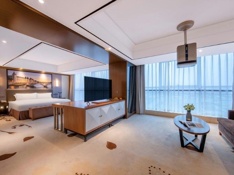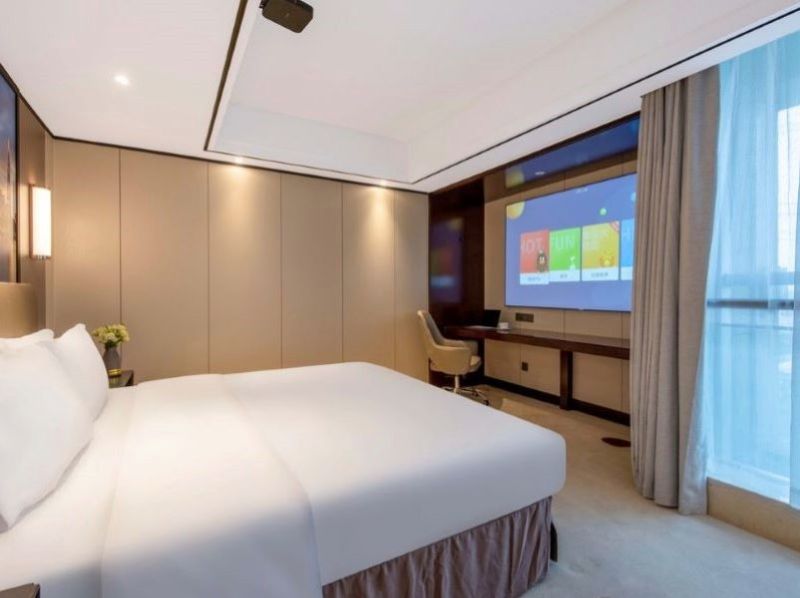 维也纳国际酒店(杭州新农都地铁站店)【原萧山茗可名宾馆】位于杭州市萧山区新农都市场内,由盈佳多酒店管理有限公司于2020年斥资5000余万耗时10个月重新装修而成。酒店总建筑面积32000平方米,共20个楼层,按照中国第一酒店集团-----锦江酒店集团旗下维也纳国际酒店最新标准装修,秉承让世界每一个角落都有家的感觉的核心使命,为您提供舒适典雅、品质豪华、安全环保、音乐艺术、健康睡眠的核心价值体验。完善的安保系统,星级的酒店客房,营养丰富的自助早餐,100㎡--400㎡多功能现代数字化会议室,满足大小不同的各种会议、宴会、发布会等的会务需要;酒店拥有客房274余间套,并且酒店配有多用健身房、洗衣房、KTV、足疗养生。超大地上停车场和地下停车库。周边交通便利距离地铁7号线仅600米且7号线直达奥体中心,与市民中心隔江相望;距离杭州火车东站和南站仅20分钟左右车程。酒店周边生活配套设施完善:购物、商超、银行、娱乐、电影院、服装美妆、彩妆整形、鱼货海鲜、农贸市场等应有尽有。是您商务出行、会议培训、旅游度假的首选之地,热诚欢迎您的光临!