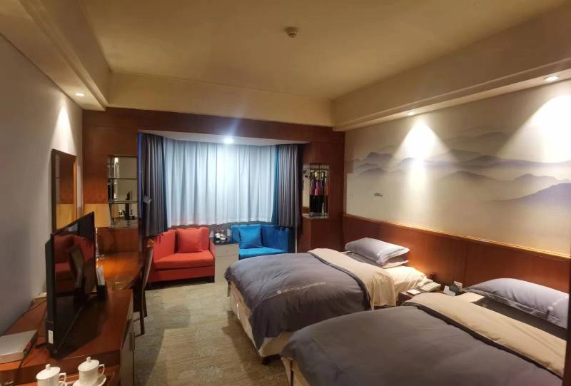 酒店客房卫生追求布草舒适,可提供荞麦枕(硬枕)和赛羽绒枕等多种枕头供您选择;四巾独立包装,干净卫生;一次性用品等均使用知名品牌。